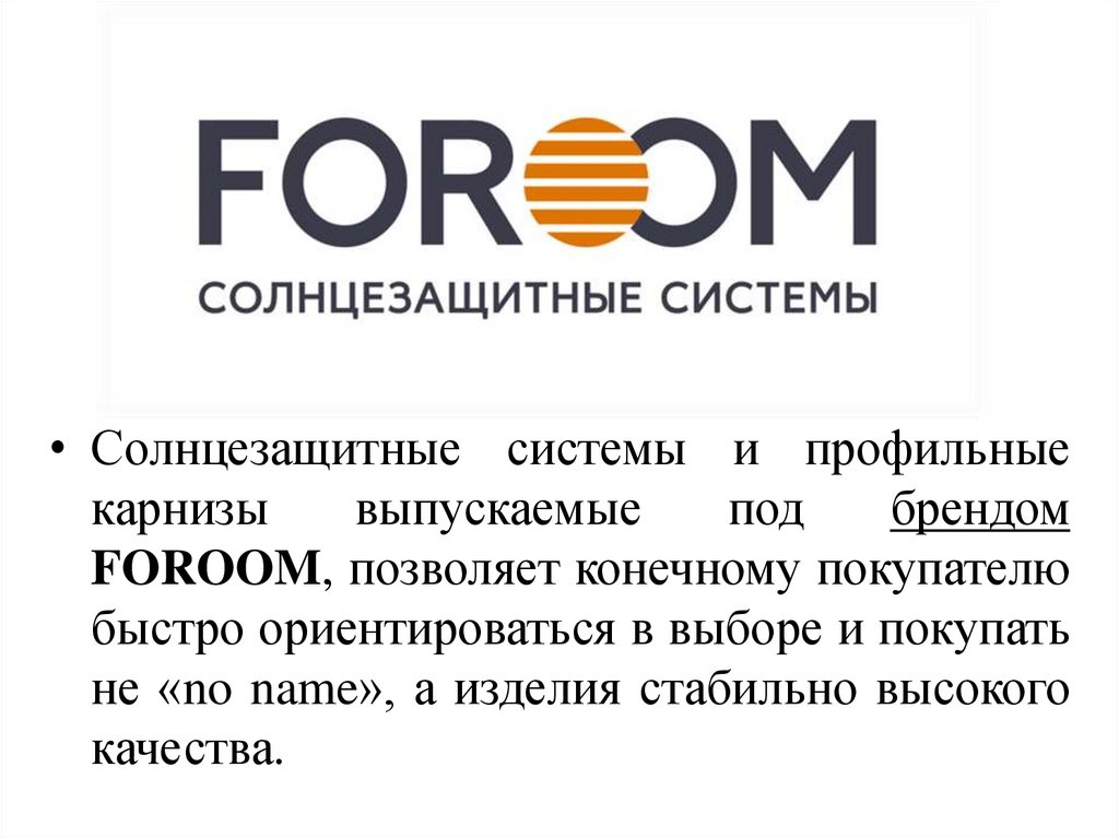 • Все системы FOROOM производятся на современномвысокотехнологичном оборудовании, по принципу