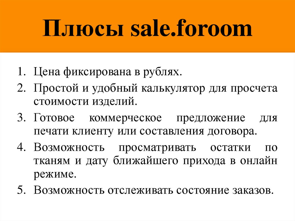 Плюсы sale.foroom1. Цена фиксирована в рублях.