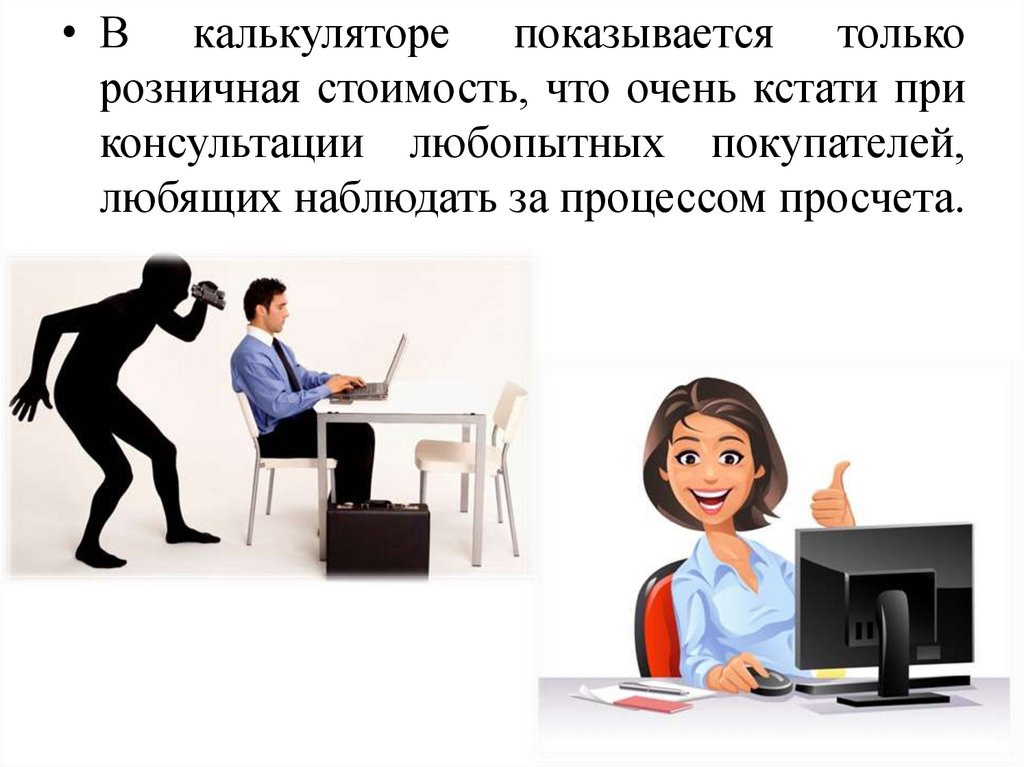 • В калькуляторе показывается толькорозничная стоимость, что очень кстати при