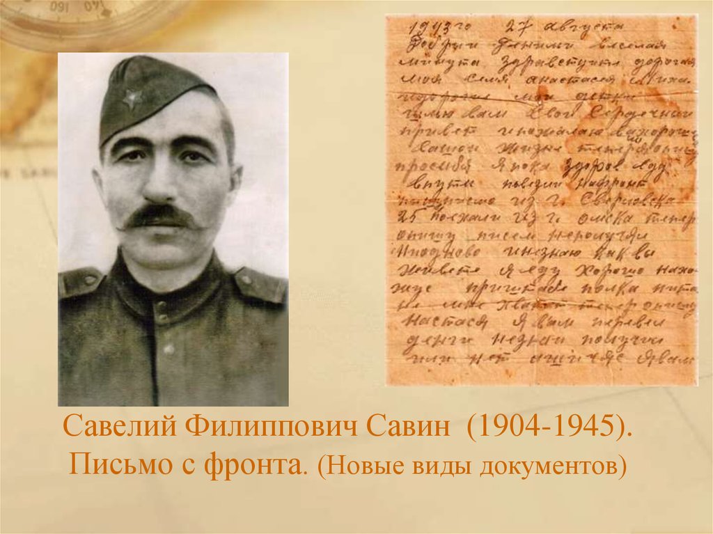 Савелий Филиппович Савин (1904-1945).Письмо с фронта. (Новые виды документов)
