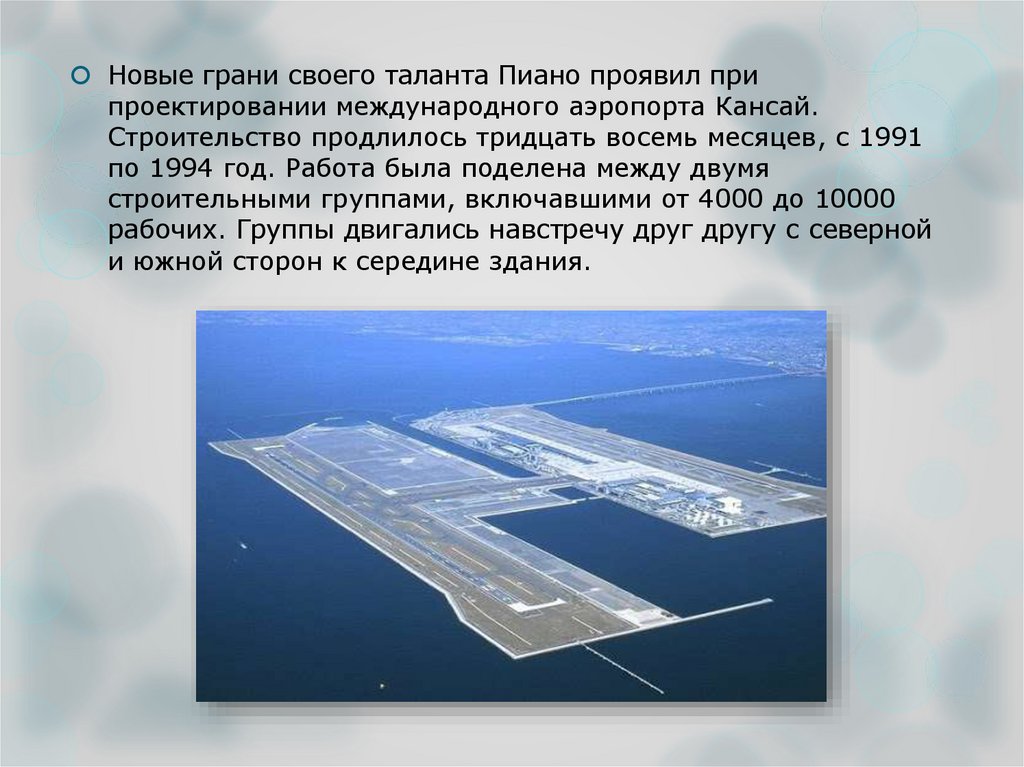 Новые грани своего таланта Пиано проявил припроектировании международного аэропорта Кансай.