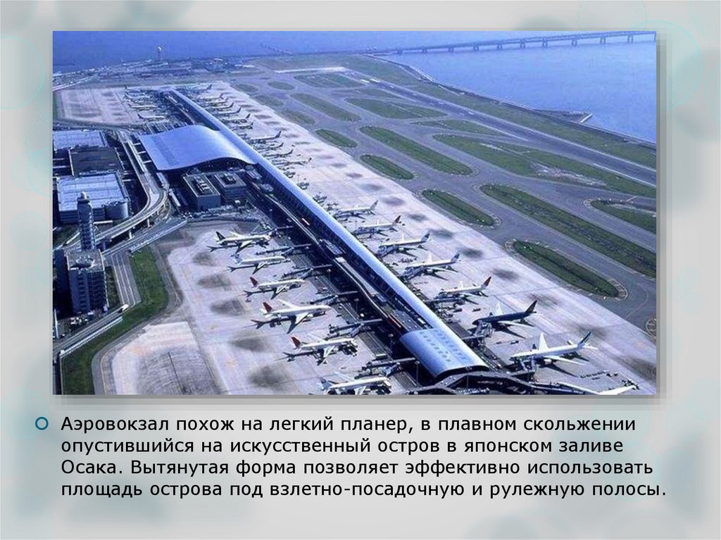 Аэровокзал похож на легкий планер, в плавном скольженииопустившийся на искусственный остров в японском заливе