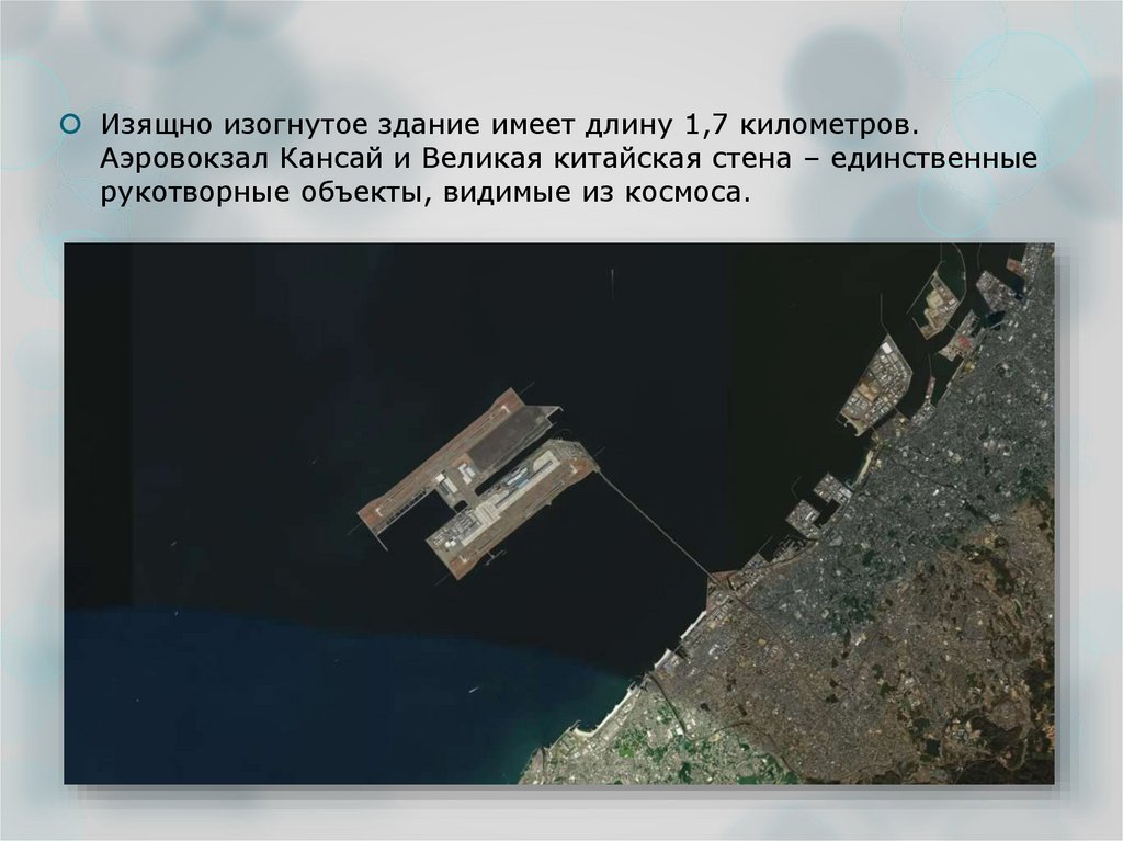 Изящно изогнутое здание имеет длину 1,7 километров.Аэровокзал Кансай и Великая китайская стена – единственные