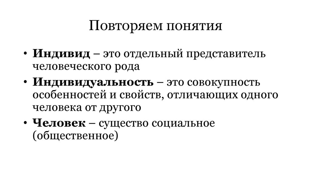 Повторяем понятия• Индивид – это отдельный представитель