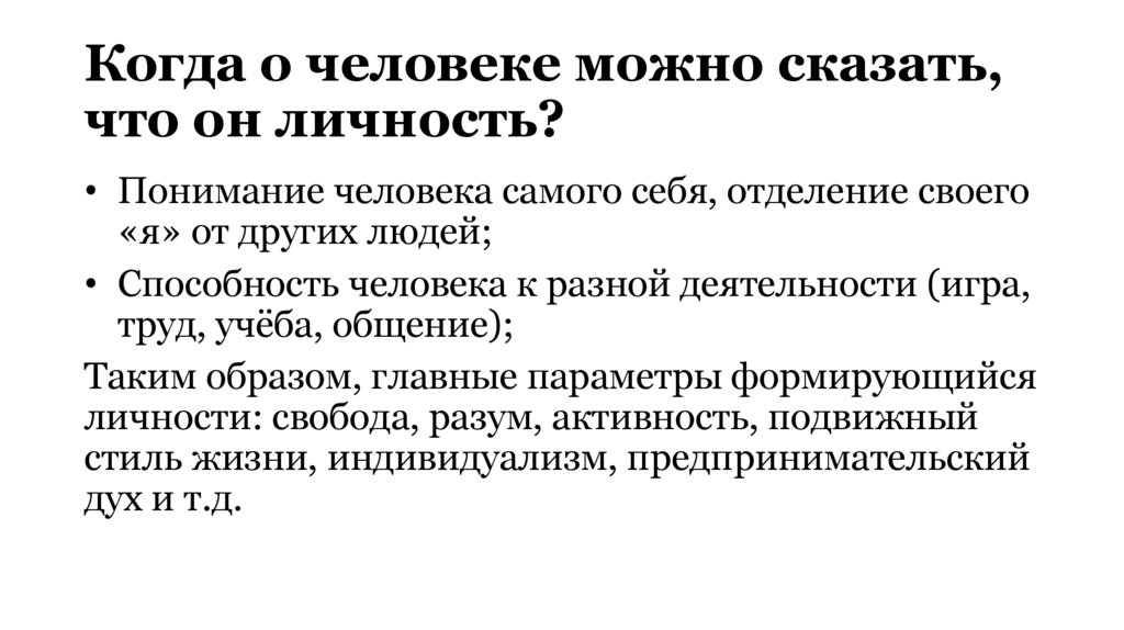 Когда о человеке можно сказать,что он личность?