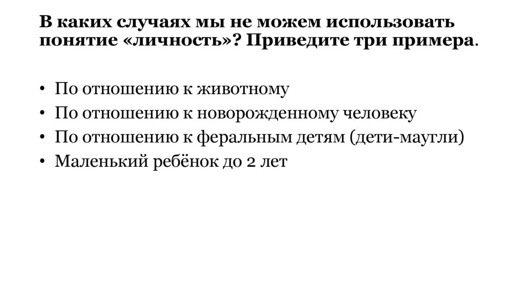 В каких случаях мы не можем использоватьпонятие «личность»? Приведите три примера.