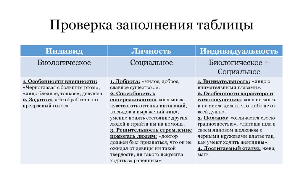 Проверка заполнения таблицыИндивид