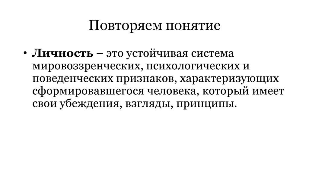 Повторяем понятие• Личность – это устойчивая система