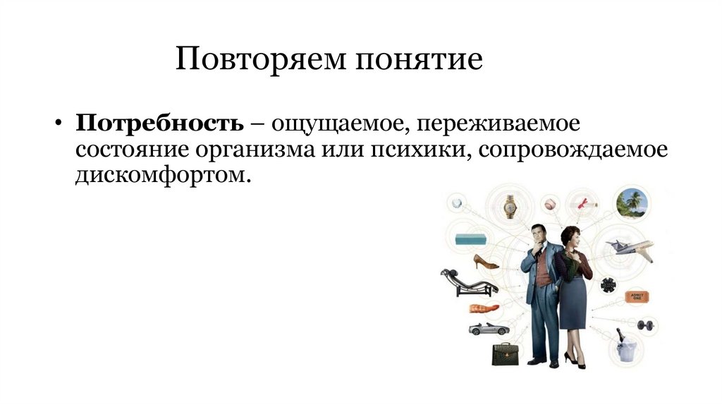 Повторяем понятие• Потребность – ощущаемое, переживаемое