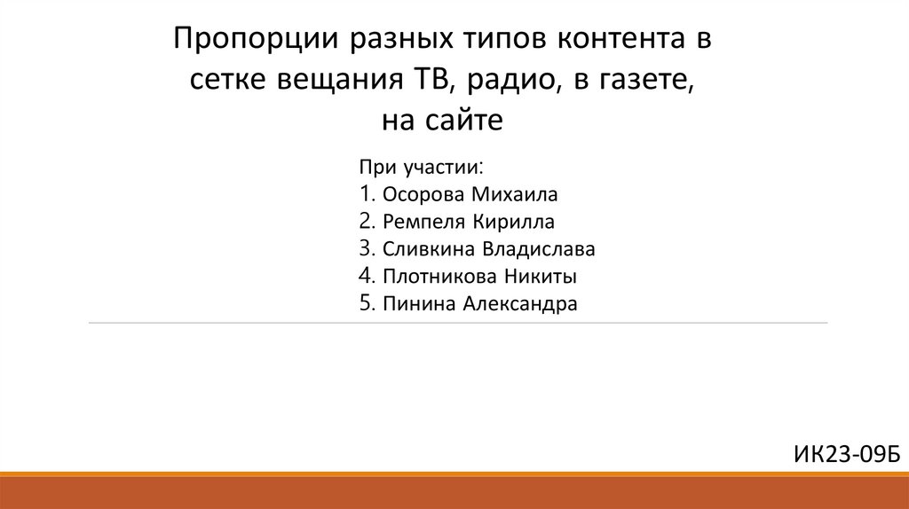 Пропорции разных типов контента в сетке вещания ТВ, радио, в газете, на сайте