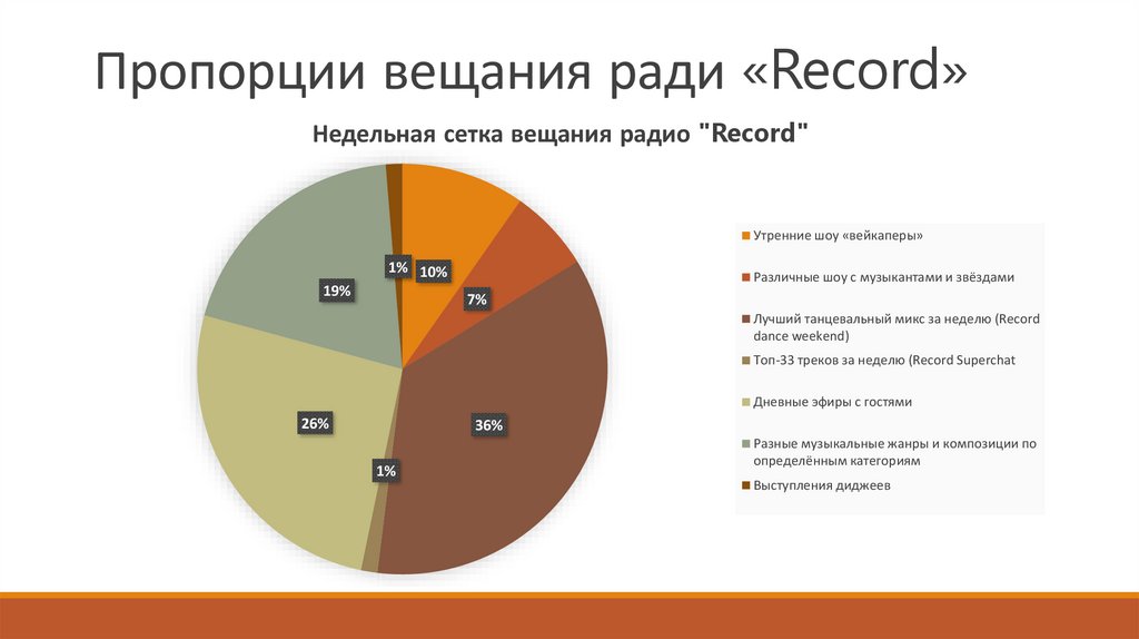 Пропорции вещания ради «Record»Недельная сетка вещания радио "Record"