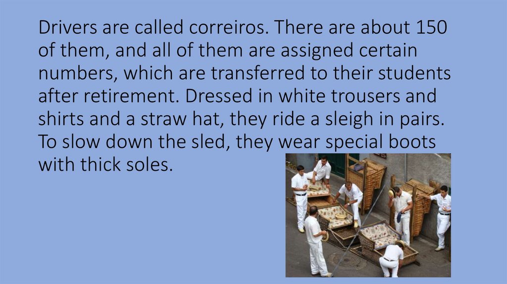 Drivers are called correiros. There are about 150of them, and all of them are assigned certain