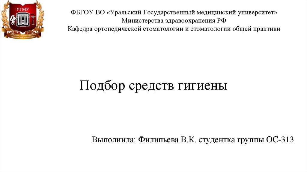 ФБГОУ ВО «Уральский Государственный медицинский университет»Министерства здравоохранения РФ