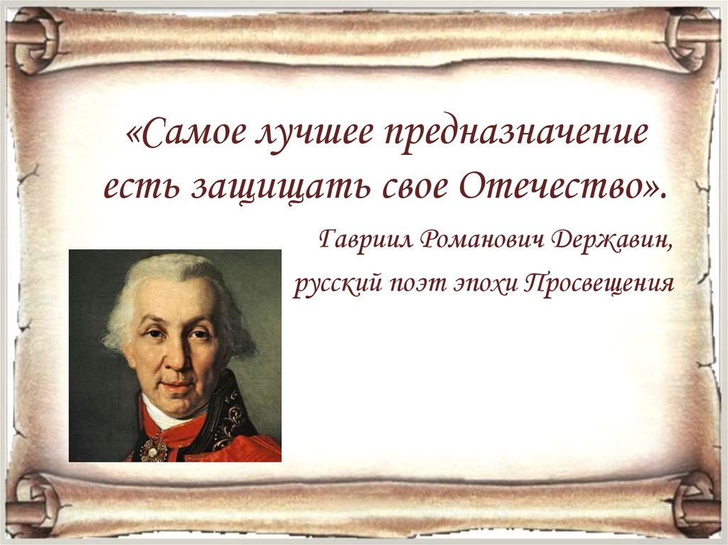 «Самое лучшее предназначениеесть защищать свое Отечество».