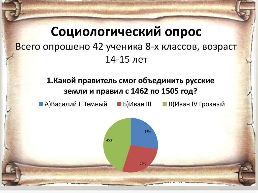 Социологический опросВсего опрошено 42 ученика 8-х классов, возраст