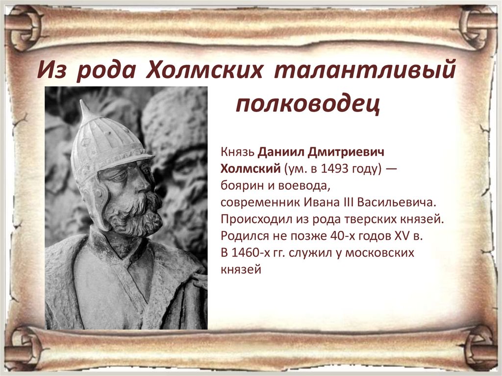 Гипотеза: полководец Даниил Холмскиймалоизвестен молодым людям 14-15 лет