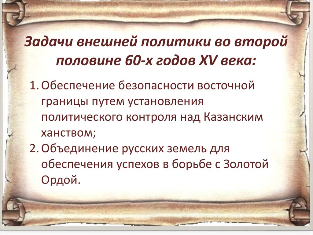 Задачи внешней политики во второйполовине 60-х годов XV века: