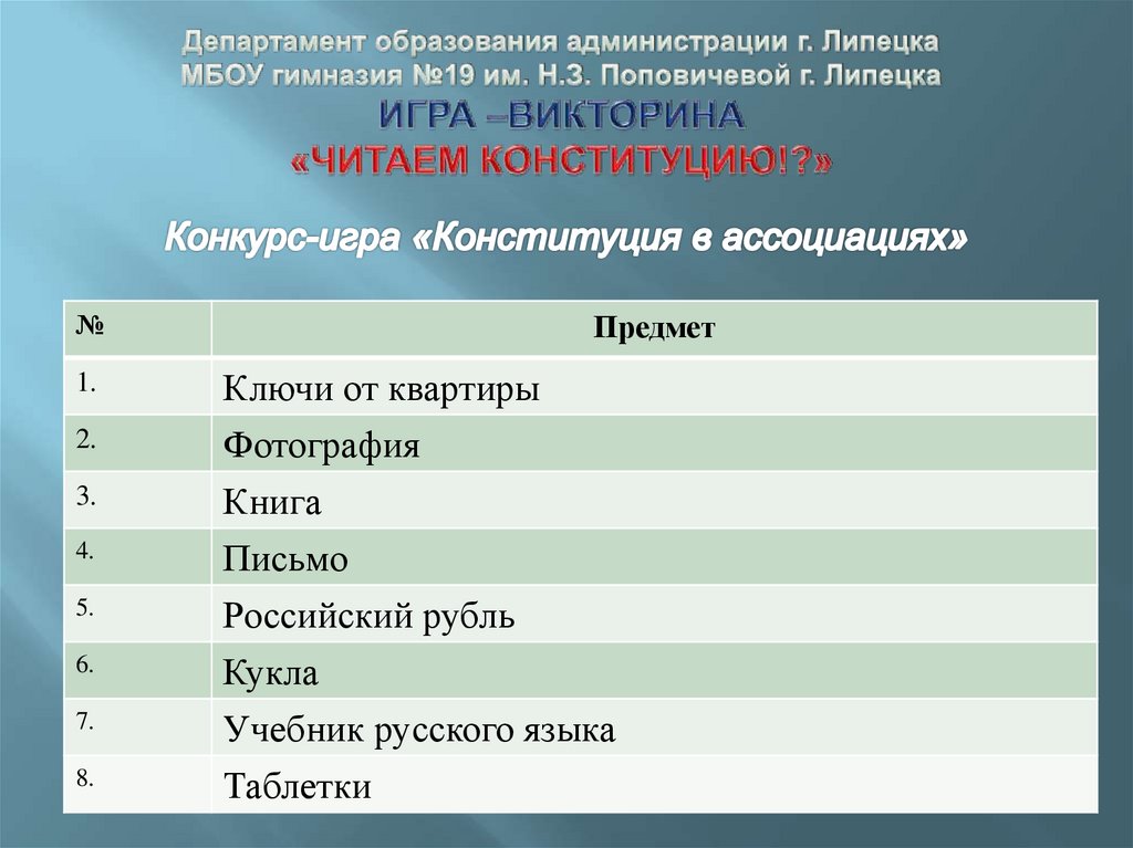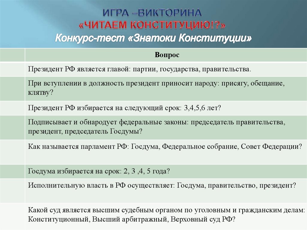 Игра-викторина "Читаем Конституцию!?"