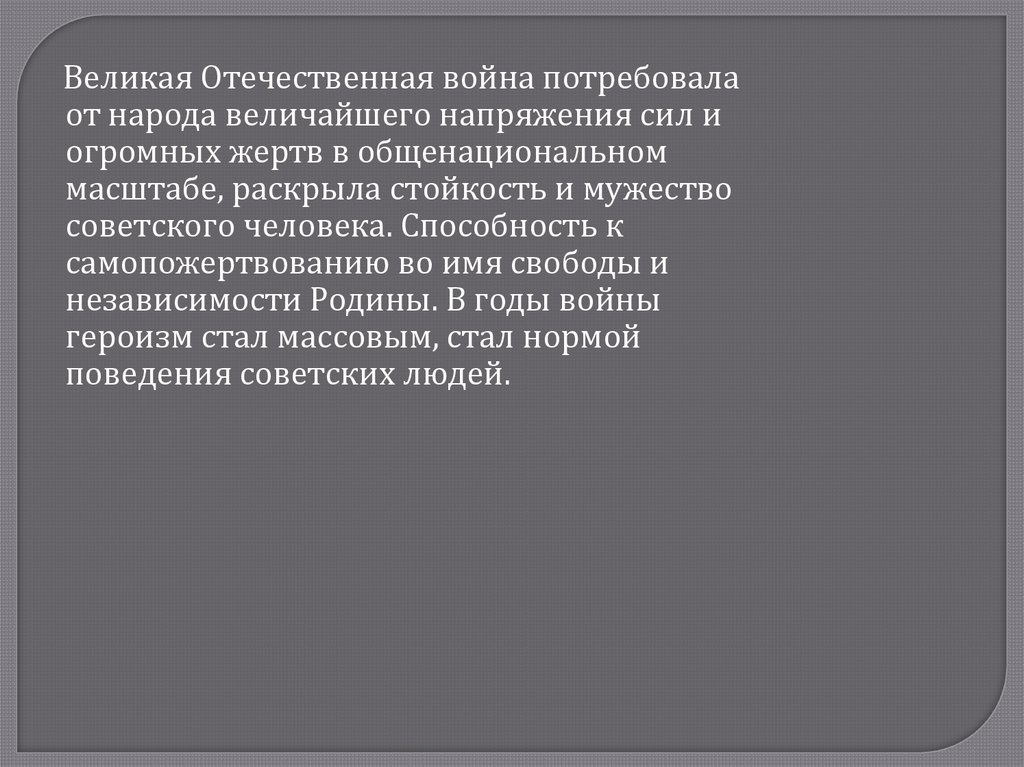 Великая Отечественная война потребовалаот народа величайшего напряжения сил и