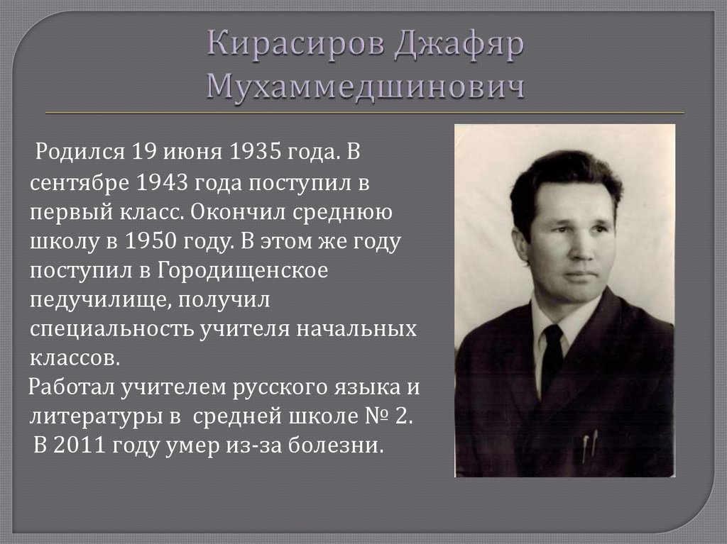 Кирасирову Джафяре Мухаммедшиновиче, жителях Средней