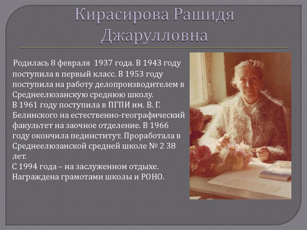 бабушке – Кирасировой Рашиде Джарулловне и дедушке –