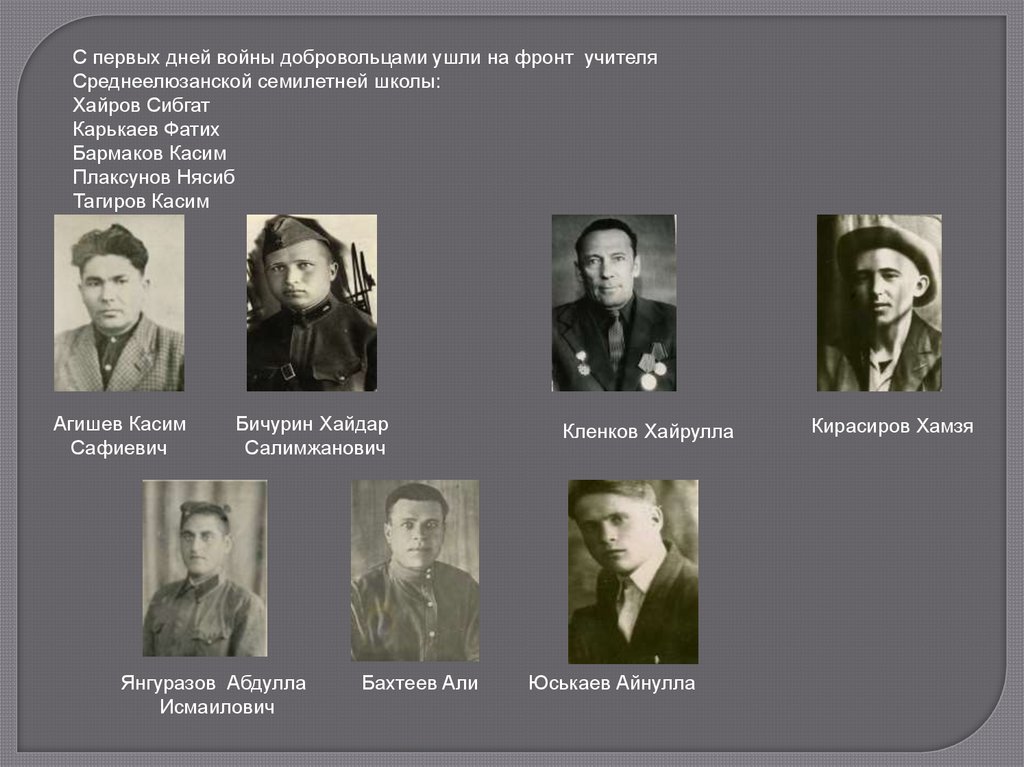 С первых дней войны добровольцами ушли на фронт учителяСреднеелюзанской семилетней школы: