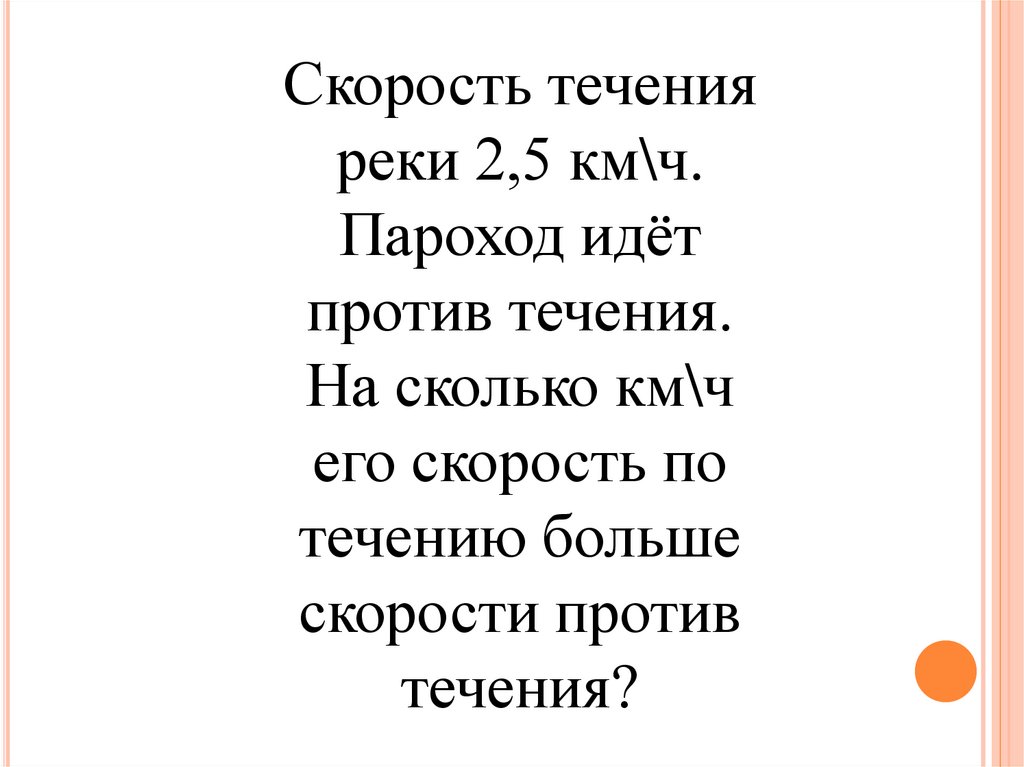 Скорость теченияреки 2,5 км\ч.