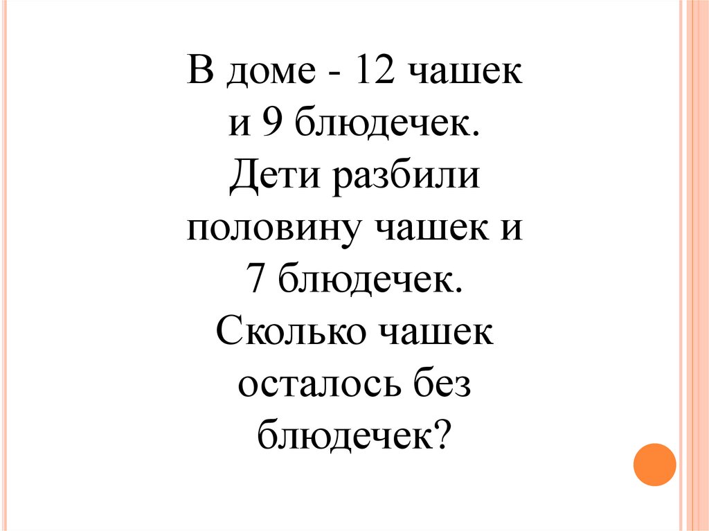 В доме - 12 чашеки 9 блюдечек.