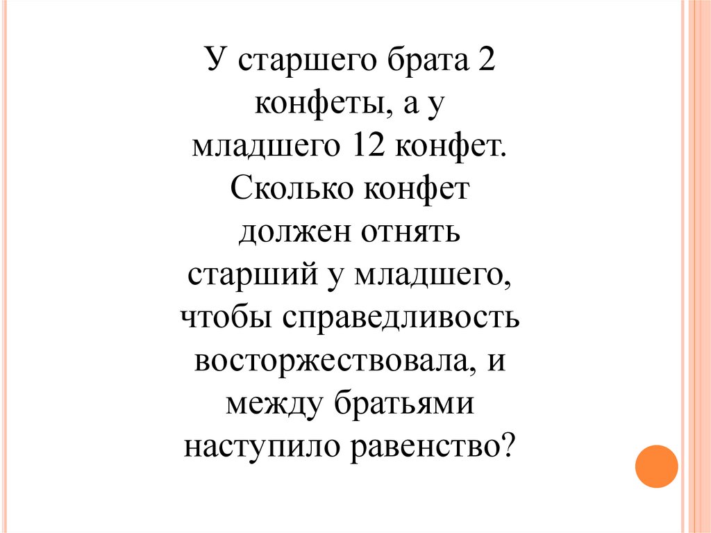 У старшего брата 2конфеты, а у