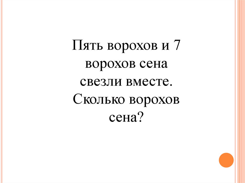 Пять ворохов и 7ворохов сена