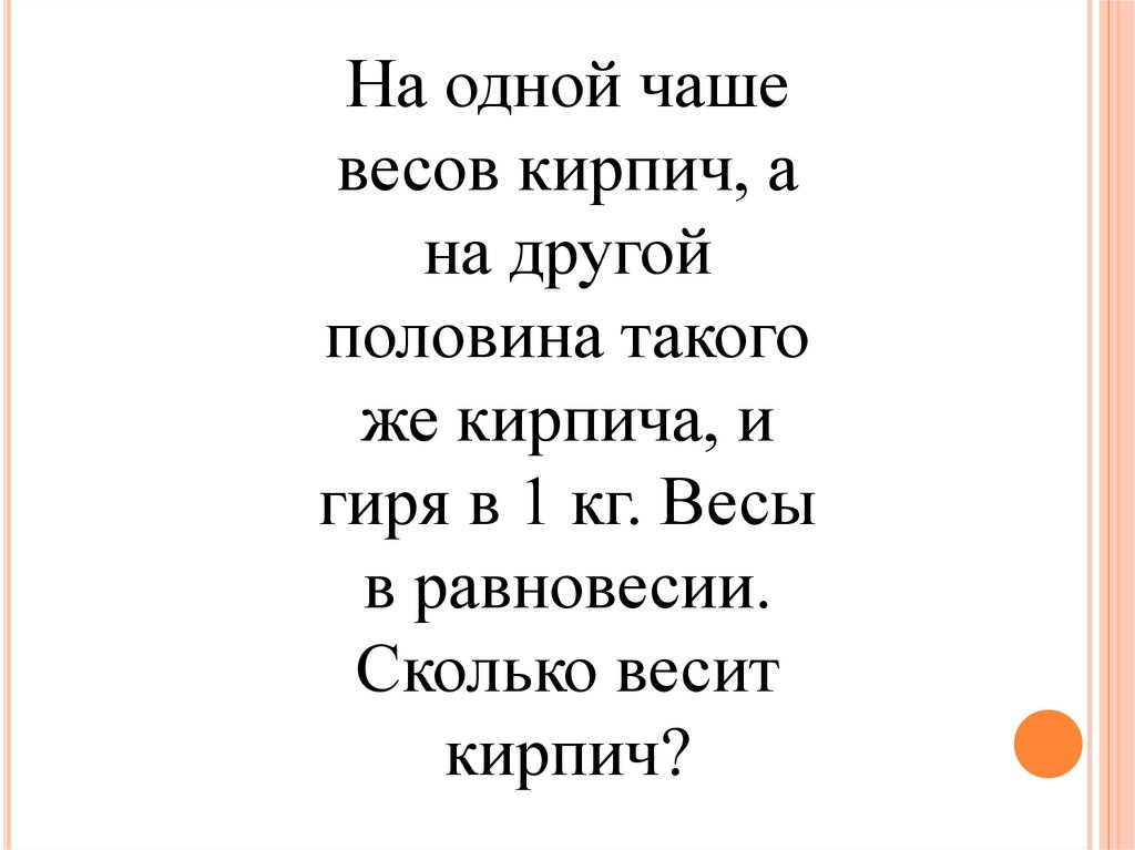 На одной чашевесов кирпич, а