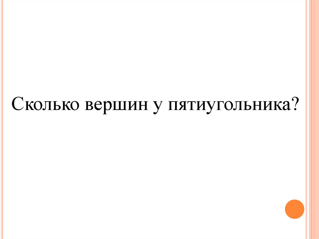 Сколько вершин у пятиугольника?11.