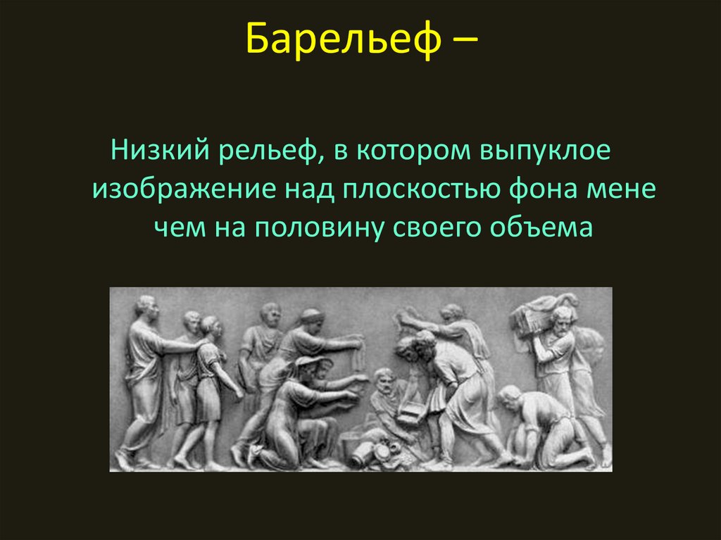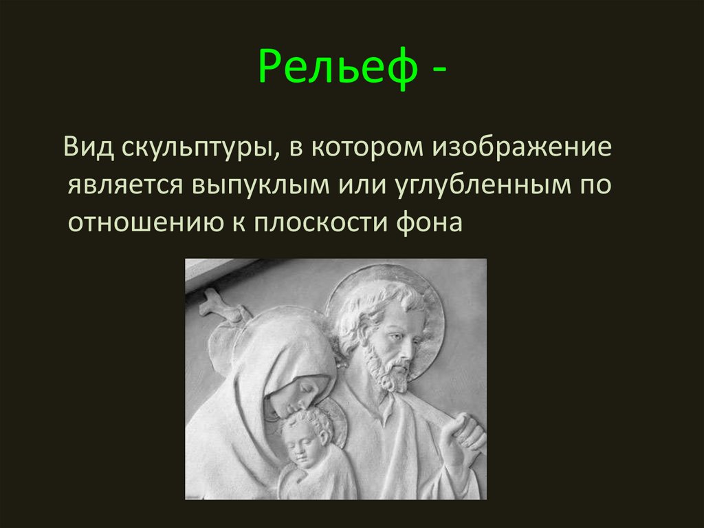Рельеф Вид скульптуры, в котором изображениеявляется выпуклым или углубленным по