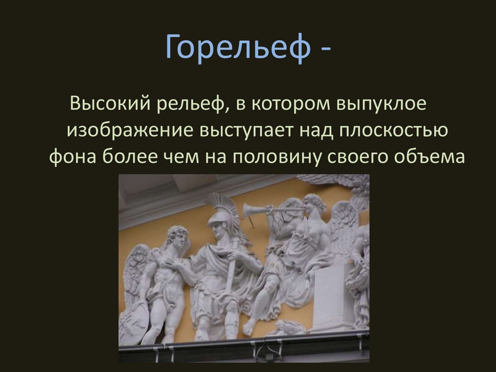 Горельеф Высокий рельеф, в котором выпуклоеизображение выступает над плоскостью