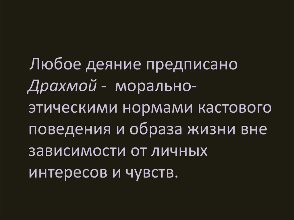 Любое деяние предписаноДрахмой - моральноэтическими нормами кастового