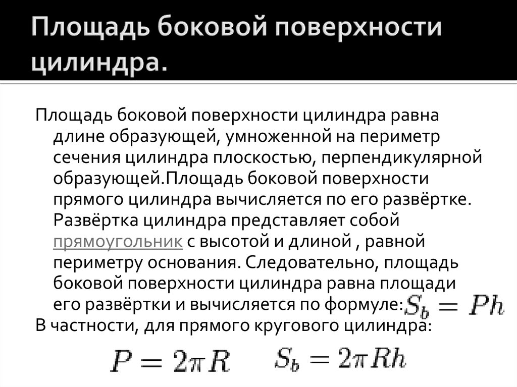 Площадь боковой поверхности цилиндра равнадлине образующей, умноженной на периметр