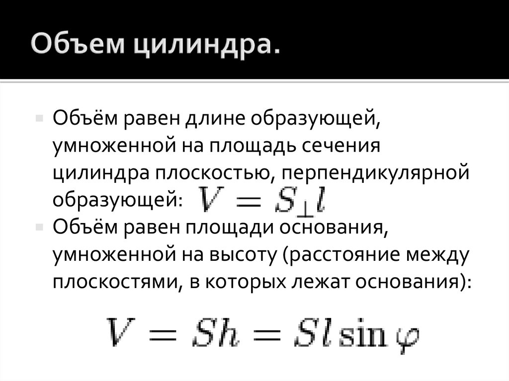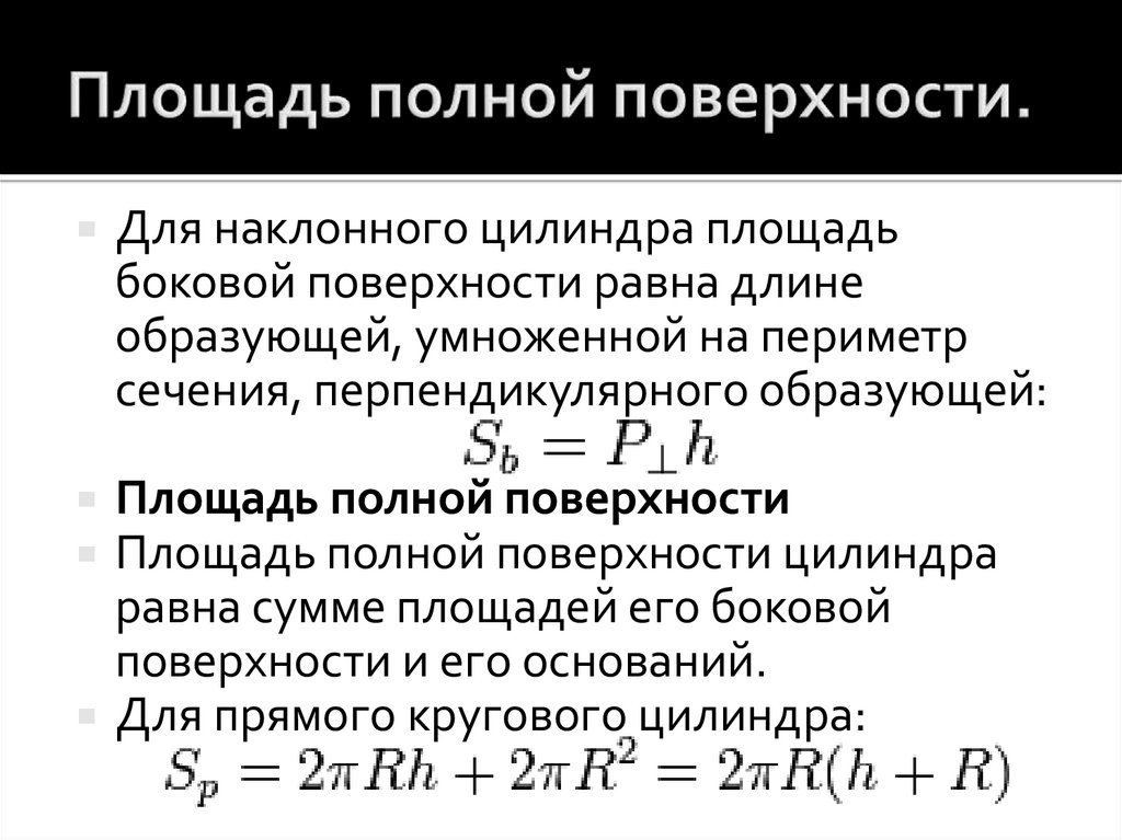 Для наклонного цилиндра площадьбоковой поверхности равна длине