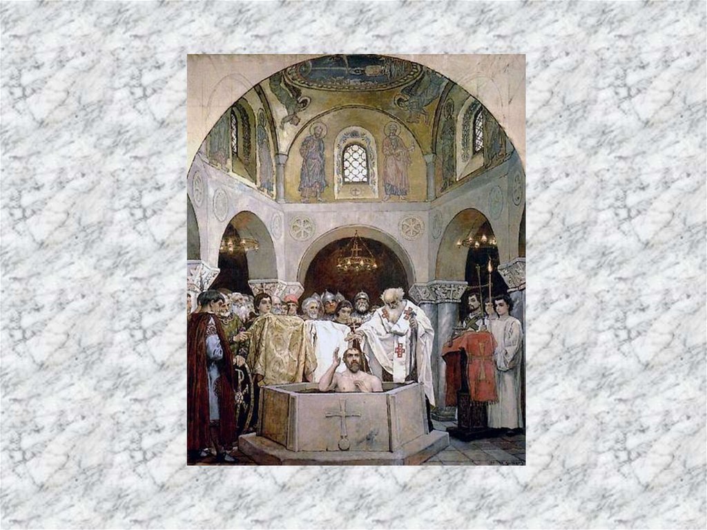 987 - князь Владимир принимает крещение и нарекается Василием;