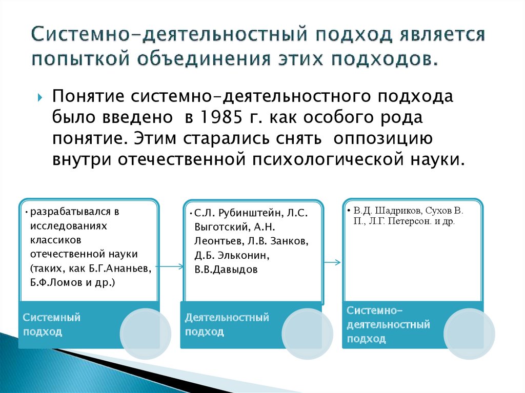 Понятие системно-деятельностного подходабыло введено в 1985 г. как особого рода