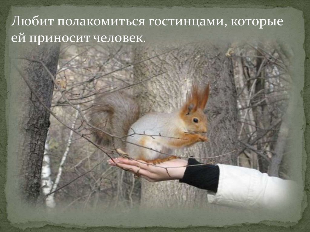 Любит полакомиться гостинцами, которыеей приносит человек.