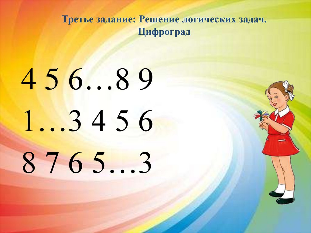 Третье задание: Решение логических задач.Какой фигуры не хватает?