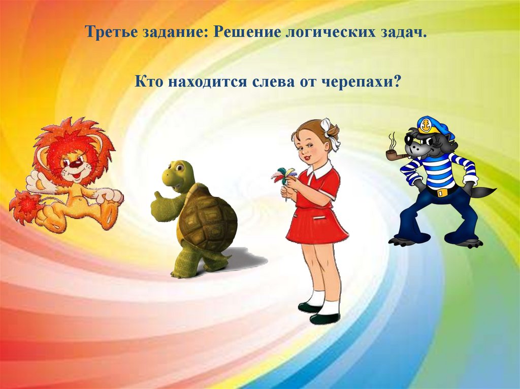 Третье задание: Решение логических задач.Кто находится слева от черепахи?