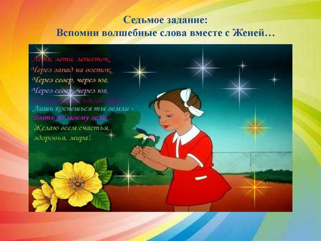 Седьмое задание:Вспомни волшебные слова вместе с Женей…