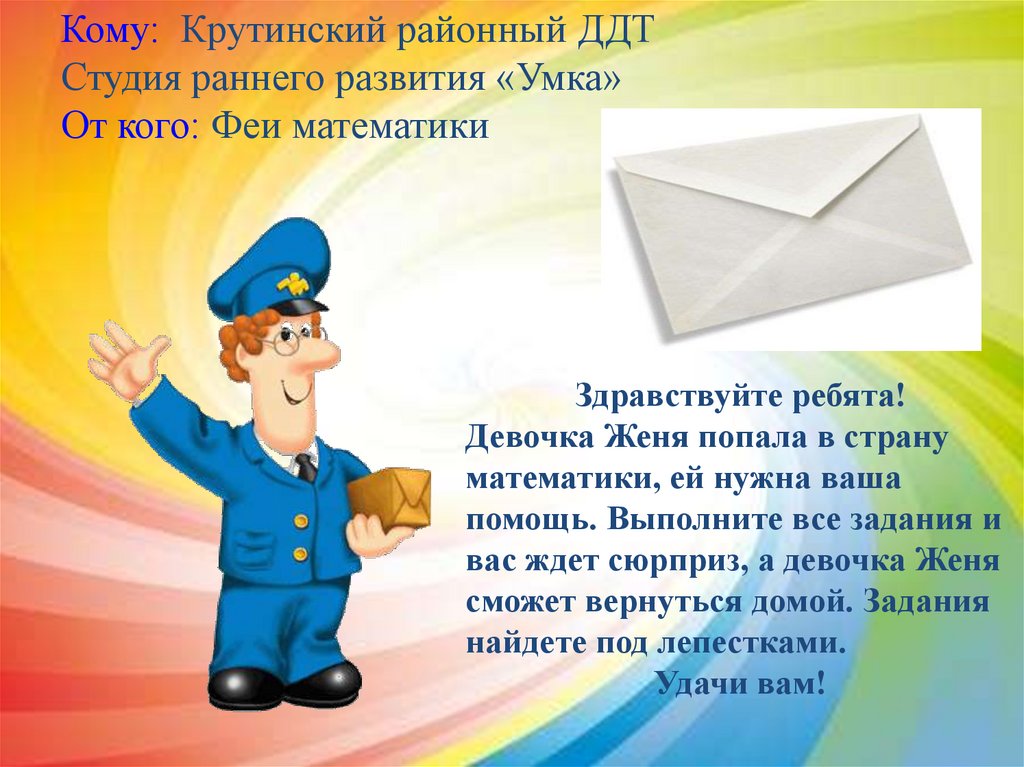 Кому: Крутинский районный ДДТСтудия раннего развития «Умка»