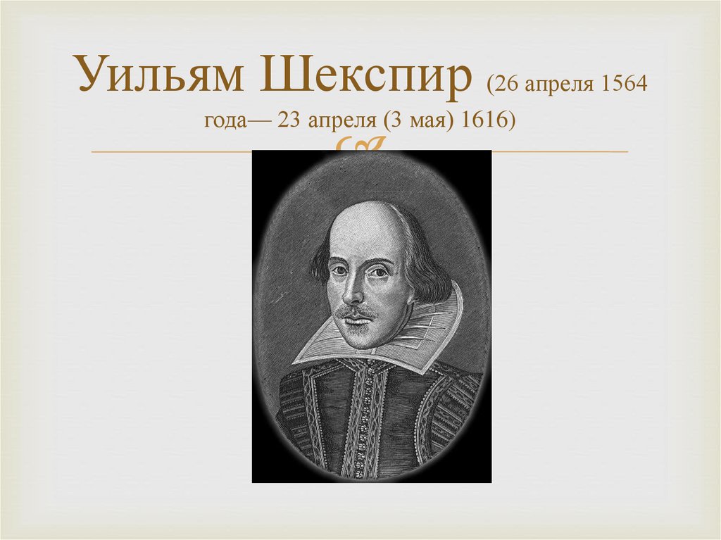 Уильям Шекспир (26 апреля 1564года— 23 апреля (3 мая) 1616)