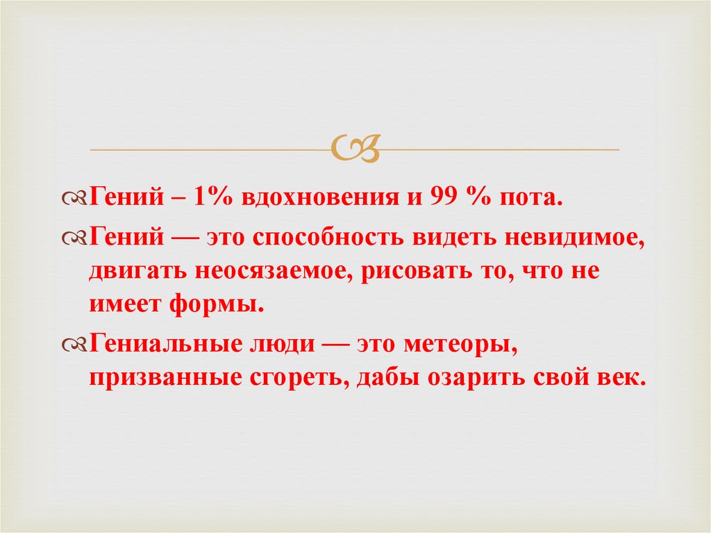 Гений – 1% вдохновения и 99 % пота.Гений — это способность видеть невидимое,