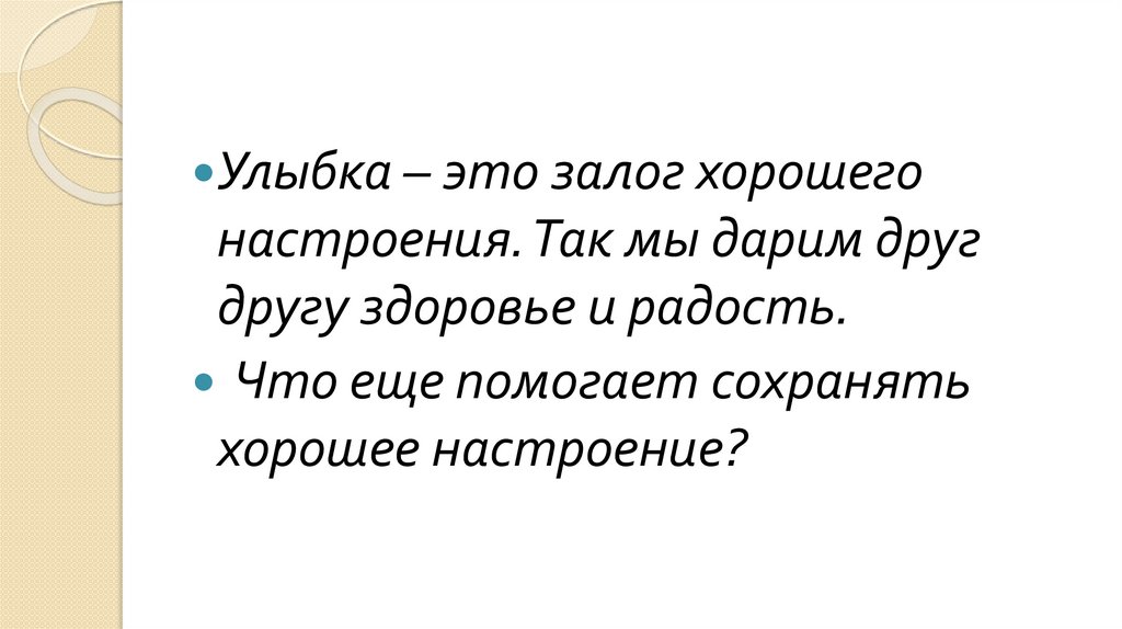 Улыбка – это залог хорошегонастроения. Так мы дарим друг