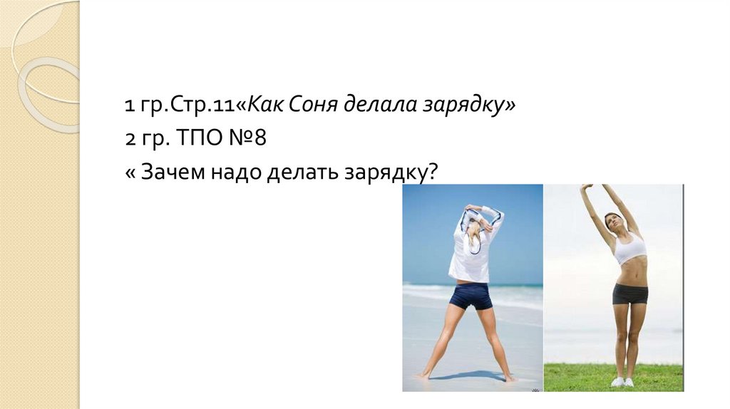 1 гр.Стр.11«Как Соня делала зарядку»2 гр. ТПО №8