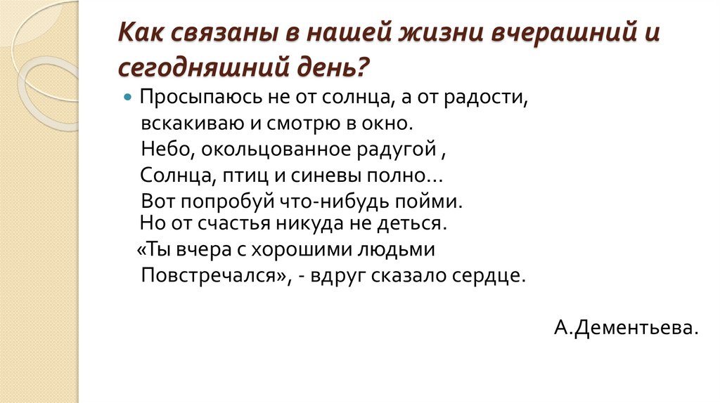Как связаны в нашей жизни вчерашний исегодняшний день?