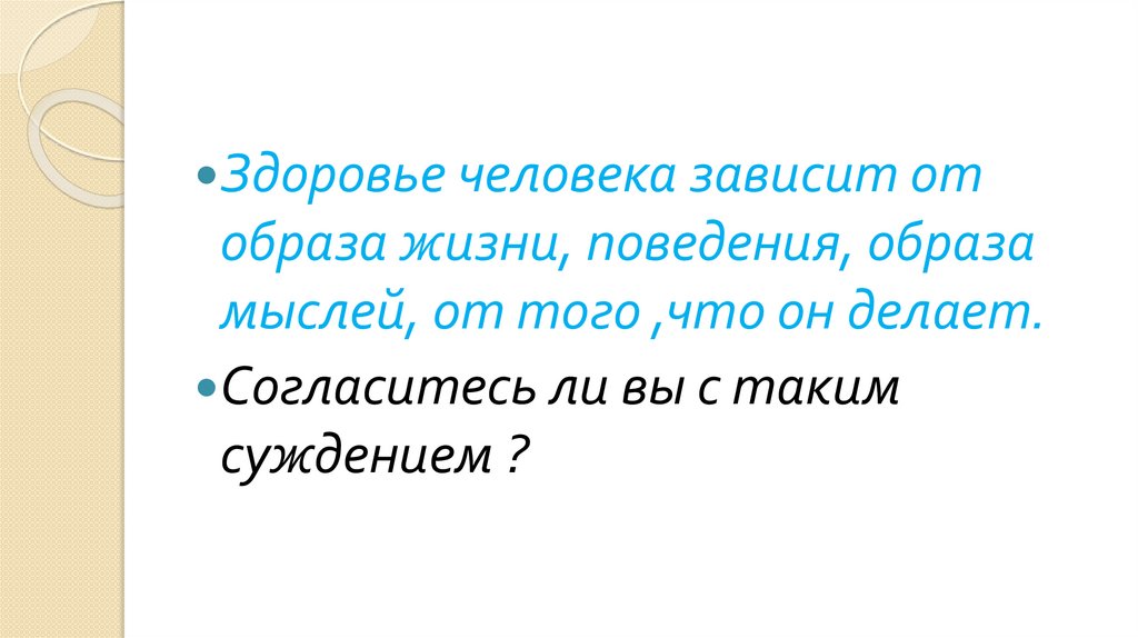 Здоровье человека зависит отобраза жизни, поведения, образа